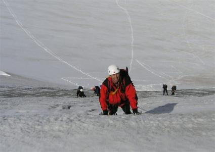 Firn und Eisanstieg, 45°, 450 Hm, Zeit : 2 – 4 Stunden.