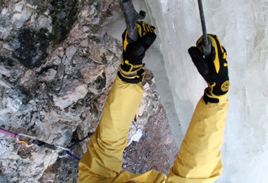 Nachdem ich zwei Mal die ersten Seillängen probiert hatte, wollte ich am 29. Januar die gesamte Route klettern. Ich war zwar in Form aber bei 15° C beim Einstieg war ich mir nicht sicher, ob es klug sei auf die riesigen Eisvorhänge hinauszusteigen.