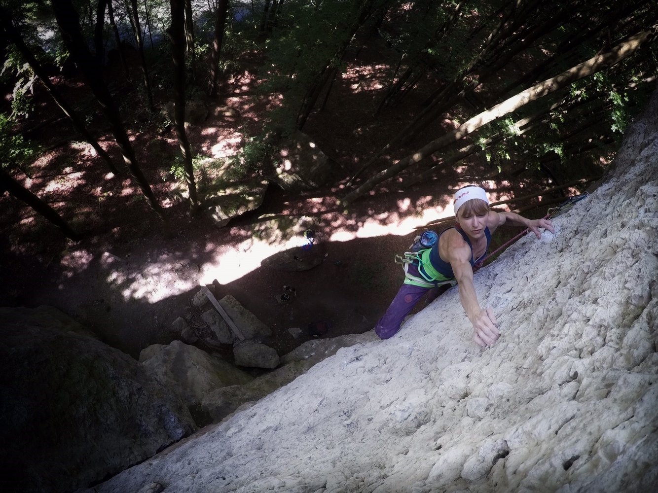 Letztens war ich zweimal für einen zweitägigen Trip im Frankenjura. Dort gelangen mir tolle Routen. Ich kletterte "Magic Sound Waves, 8a+" in der Applauskurve und "L.A. Crash, 8a" an der Pornowand gelang mir halb-On-Sight. Halb, weil ich den letzten Teil einer 7b kannte. Besonders stolz macht mich die Flash Begehung von "Alter Ego, 8a" im Kollosseum einerseits und die "Battle Cat, 8c" im Hängenden Stein andererseits. Letztere gelang mir in zweieinhalb Versuchen (zweieinhalb, weil ich den ersten Teil zum Aufwärmen vorher kletterte).