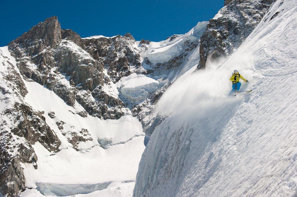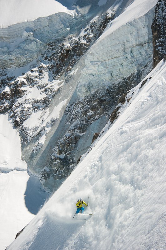 Die Westalpen gelten als Mekka der Freerider. Jedes Jahr folgen Tausende Breitskifahrer aus ganz Europa und Übersee ihrem Ruf. Wer heute abseits von Liften und Off-Piste-Tourismus das pure Bergerlebnis wünscht, muss ordentlich suchen. Fündig wurden wir in einem 50°-Couloir im Glacier de la Noire, Freeski-Legende Glen Plake sei dank.