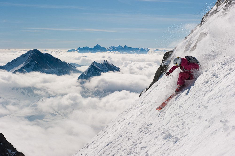 Vor einigen Jahren wurden eingestaubte Skifahrer mit breiten Brettern am Fuß und einem fetten Grinsen im Gesicht noch irritiert von ihren Pistenkollegen betrachtet. Freeskiing, also das Befahren unverspurter Hänge jenseits präparierter Abfahrten, galt als Randgruppensport. Gewohnt war man höchstens ein paar Tourengeher, die mit schmalen, weil leichteren Skiern einsam ihre Zöpfe in das weiche Weiß flochten. Nach und nach tauchten die ersten Verrückten auf. Skifirmen bauten Bretter mit mehr als 100mm unter der Bindung. Die Software, also Hosen, Jacken etc. erinnerten an den Style der Snowboardszene. Überhaupt verdankt das Freeriden auf Ski seiner Schwesterdisziplin, dem Snowboarden, sehr viel. Heute ist es mit dem Geländeskifahren wie so oft im Sport: die Vorreiter haben sich in die Welle gestürzt, kommerziell abgeritten wird sie von der Industrie. So wie die durchschnittliche Breite der Ski in den letzten Jahren kontinuierlich ansteigt, wächst auch die Zahl derer, die – fasziniert von einschlägigen Videos und dem Stil der Profis – auf den Imagezug aufspringen wollten. Doch für unerfahrene und ungeübte lautet die Endstation leider oftmals: Krankenhaus. Wenn sie Glück haben. Denn der Berg, die Gletscherspalten und Lawinen warten nicht, bis die Novizengruppe fröhlich gen Tal gerauscht ist. Wer sich im hochalpinen Gelände nicht auskennt, setzt sich der Gefahr um Leib und Leben aus.