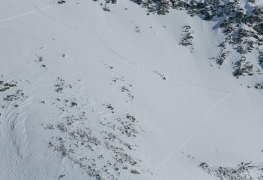 | In bereits verspurtem Gelände kann man aufgrund der großen Skifläche besser und stabiler abfahren. | Eingeschränkte Nutzung von bereits vorhandenen Spuren im Aufstieg. Die Spur muss meist mit einem Ski verbreitert werden. |