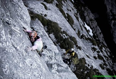 Michi Wohllebens Dank gilt den Erstbegeher, die diese gigantische Linie realisierten. Und natürlich seinem Kletterpartner Joachim Feger, der beim sichern immer motivierende Worte über hatte.