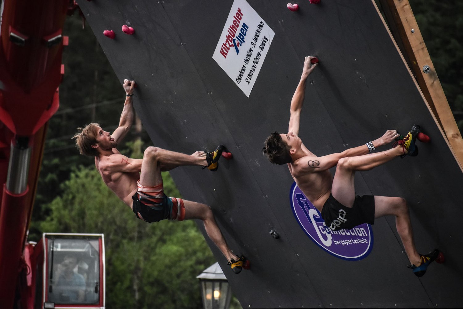 Zu spannenden Duellen kam es Samstagabend bei der Forellenranch. Nachdem die Kinder nachmittags die 15 Meter hohe über dem Teich hängende Kletterwand für sich in Beschlag genommen und beim KIDSdesaster ihre exzellenten Kletterfähigkeiten unter Beweis gestellt hatten, waren abends die Erwachsenen dran, sich im Cold Water Soloing zu messen. Dabei galt es zuerst in der Qualifikation über die Zeit die Paarungen zu ermitteln, bevor dann in den Endrunden jeweils zwei Kletterer bzw. Klettererinnen gegeneinander antraten. Wer als Erster oder Erste den Buzzer am Top drückte, war eine Runde weiter. Bei den Damen standen sich schlussendlich Hannah Seibl vom ÖAV Team Wilder Kaiser und Angelina Wörgetter vom ÖAV Hochfilzen im Finale gegenüber. Die erst 16-jährige Hannah Seibl konnte das letzte Duell für sich entscheiden und wurde zur Miss of ROCKdesaster gekürt. Das Halbfinale der Herren sah wieder bekannte ROCKdesaster Gesichter. Phillip Danzl musste gegen Lorenz Bonapace an den Start und Clemens Berger gegen Philipp Kompatscher. Ein spannendes Finale brachte dann eine Hundertstel-Entscheidung zwischen dem Fieberbrunner Clemens Berger und Lorenz Bonapace vom ÖAV Innsbruck. Im Fotofinishing hatte Clemens Berger knapp die Nase vorne und durfte anschließend die Trophäe für den Master of ROCKdesaster 2018 entgegennehmen.