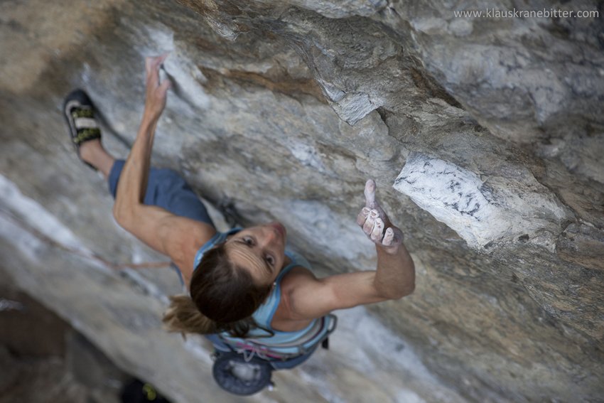 Für die Teilnehmerin Martina „Matze“ Harnisch war der Girls Rock Day ein Heimspiel: Die Route „Coq au vin“ (8b+) verbuchte sie bereits im Frühjahr.