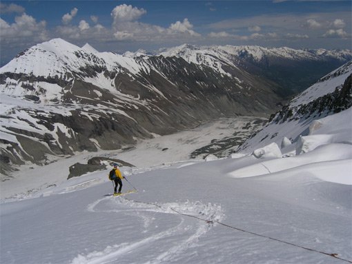 Wer an Risiken bei Skitouren denkt, denkt zunächst nur an Lawinengefahr. Dass Skibergsteiger, die Touren auf Gletschern unternehmen mit einer ähnlich schwer einzuschätzenden Gefahr, nämlich dem Risiko in eine Gletscherspalte zu stürzen , konfrontiert sind, wird gerne vergessen. Spaltenstürze passieren auch mit Skiern und Snowboard und bedeuten immer Lebensgefahr.