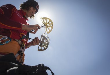 Stefan Glowacz, dreifacher Rock Master Sieger, Vizeweltmeister 1993, Abenteurer, Erstbegeher namhafter Big Walls wie “Behind the Rainbow” (8b) am Roraima Tepui oder “Take the longway home” (8a+) in Baffin Island und Chris Sharma, Sportkletterikone und Erstbegeher einiger der schwersten Routen weltweit wie “La Dura Dura” (9b+) und “Jumbo Love” (9b), waren das perfekte Team, um die Schwierigkeiten der Majlis al Jinn Höhle in Angriff zu nehmen und zu überwinden.