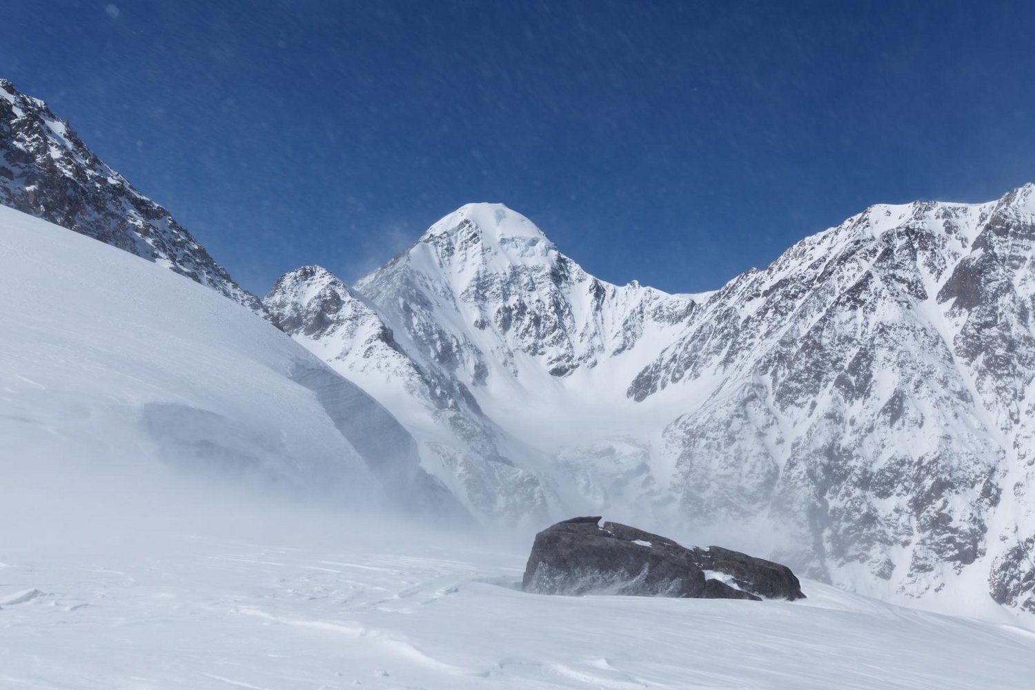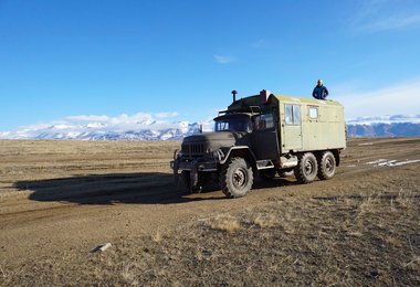 Die Reise ins Altai Gebirge war von Anfang an ein Abenteuer da der Zielflughafen aufgrund des starken Windes nicht anfliegbar war. In Gorno Altaysk angekommen war die Kommunikation sogar mit Händen und Füßen schwierig, da die Russen großteils kein Englisch sprachen. Der Fahrer zum Basecamp war ein Bleifußpilot, er kannte nur ein Gas, das Vollgas. Nach einem Fahrzeugwechsel im letzten bewohnten Ort Kuray ging es mit einem alten 6x6 Militärtransporter über ein riesiges Hochplateau weiter ins Basecamp. Aufgeteilt in zwei Gruppen erkundeten wir gleich nach Ankunft die Gletscher des Altaigebirges um uns einen ersten Überblick zu verschaffen. Im Laufe der Rund zwei Wochen im Basecamp konnten wir zahlreiche Steilwände und Rinnen besteigen und teils Erstbefahren. Die Verhältnisse waren heikel da uns jeden Tag extrem starker Wind (bis zu 130 km/h) und eiskalte Temperaturen bis -30 Grad sowie teils starker Schneefall erwarteten. Der Wetterbericht war nicht immer zuverlässig und somit die Einschätzung schwierig. Im Tal lag wenig Schnee, in mittleren Lagen sehr viel und in der Höhe glänzte das Gletschereis auf den Flanken. Nicht selten mussten wir uns mit den Skiern am Rücken und mit Pickel und Steigeisen nach oben kämpfen. Die Lawinengefahr war akut da fast täglich Neuschnee dazukam. Der Nebel, die Kälte und der Wind begünstigten den Schneedeckenaufbau nicht und verschärften die Situation. Kleinere Staublawinen und größere Schneebrettlawinen waren an der Tagesordnung. Vier Tage lang schneite es ununterbrochen bis zu 90 cm, richtige Entscheidungen mussten getroffen werden um relativ ungefährliche Routen zu wählen. Uns erwartete täglich eine raue und wilde sibirische Gletscherlandschaft, sowie wilde Gipfel, die uns aber mit wunderbaren Ausblicken beschenkten. Nach der schönen aber kräftezehrenden Zeit im Altaigebirge ging es wieder zurück in das nächst gelegene Dorf wo wir von einer bärbischen Familie zum Abendessen eingeladen wurden. Als Zeichen des Erfolges wurde ein Schaf geschlachtet und traditionell zubereitet was sonst nur bei festlichen Anlässen gemacht wird. Mit vollem Bauch und einigen kleinen Zwischenstopps führte uns die Reise über Moskau wieder zurück nach Hause.