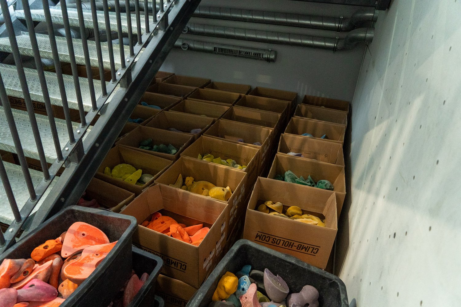 Die Griffe der Kletterhalle Südstadt werden zu Flohmarkpreisen verkauft.