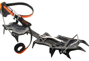 Das neue Alpinist Pro Steigeisen wurde speziell für technisch anspruchsvolles Nordwand-Terrain entwickelt. Es punktet mit seiner ausgezeichneten Passform, einem Gewicht von nur 960 g und dem festen Steg zwischen der Fersen- und der Zehenplatte. Das Highlight ist der Mittelsteg zur Feinjustierung für die Einstellung der Sohlenlänge - so präzise lässt sich vermutlich kein anders Steigeisen einstellen, Der Schuh wird standardmäßig mit einem automatischen und einem semi-automatischen Bügel geliefert, wodurch das Steigeisen den Schuhen und den Bedingungen optimal angepasst werden kann. Der Bügel kann dreistufig verstellt werden und der Kipphebel zweistufig um ihn perfekt an die Höhe der Fersenleiste anzupassen. Das Aufstollen wird bei diesem innovativem Steigeisen durch die speziell designten Platten und bewegliches Material verhindert. Kletterer die viel im kombinierten Gelände unterwegs sind, sollten sich diese Steigeisen unbedingt einmal genauer anschauen.
