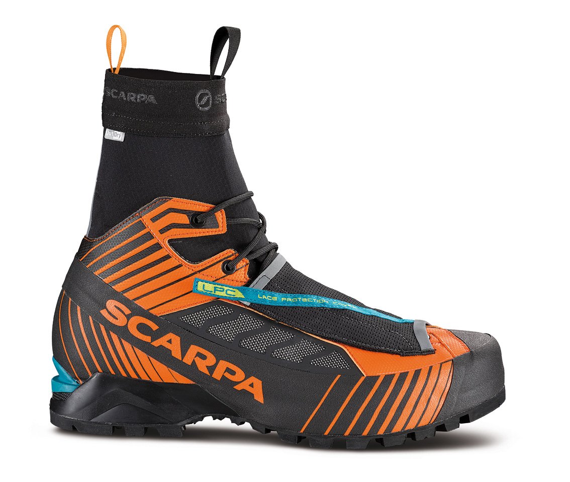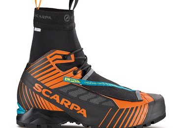 Scarpa bringt auch einen leichten "Bergschuh" heraus. Der Ribelle Tech soll Profialpinisten ansprechen, die einen extrem leichten und bedingt steigeisenfesten Bergschuh suchen. Man zieht den Schuh wie einen Socken an und schnürt ihn außen zu. Die Schnürung wird mit einer kleinen Gamasche abgedeckt. Das Gewicht bei Größe 42 liegt bei schlappen 550 g!