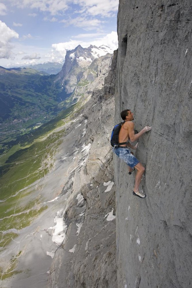 Der Aerialist“, der Luftkünstler, aus Yosemite kämpft gegen diese Wahrscheinlichkeit - mit seinem ganzen Leben: Dean klettert hunderte Meter hohe Wände hoch - ohne Sicherung. Er balanciert auf Highlines, die sich über Schluchten legen - ohne Sicherung. Er lässt sich im Flügelanzug von der Eiger Nordwand fallen.