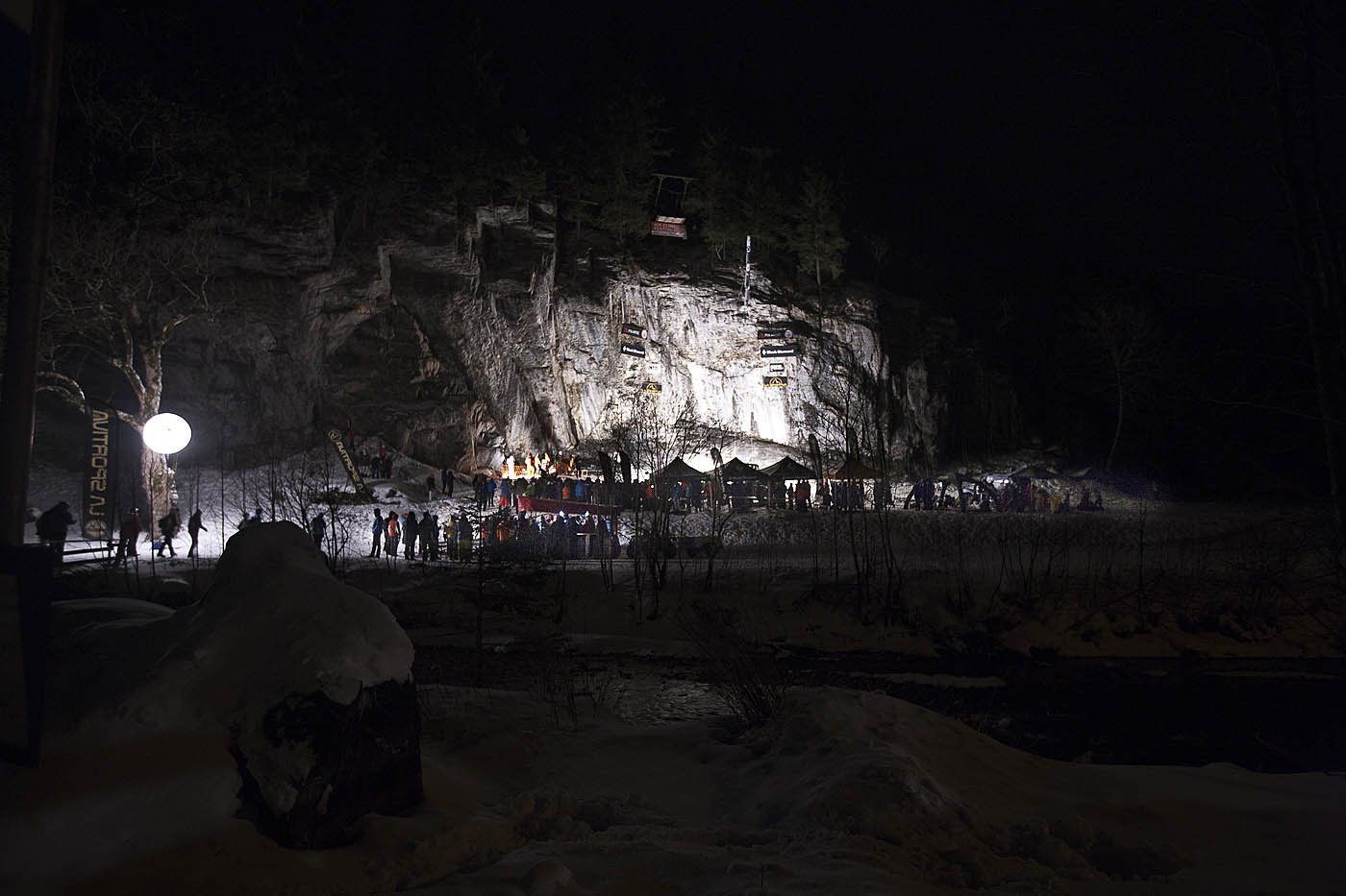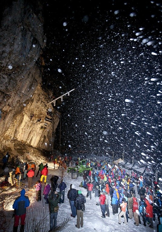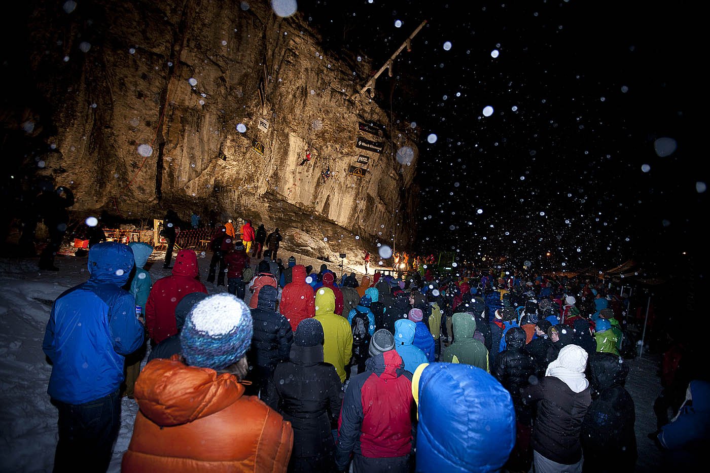 mit Schnee bedeckt. Trotz der eislosen Felswand war die Begeisterung für den Wettkampf an der ungebrochen. Neue Rekorde wurden gebrochen. Etwas 101 Teilnehmer, darunter 21 Damen, bestritten den Drytooling-Wettkampf am Samstag. Das spektakuläre Finale am Abend unter Flutlicht gewann bei den Herren der Schweizer Patrik Aufdenblatten vor Markus Bendler aus Österreich und Nikolai Primerov aus Russland.