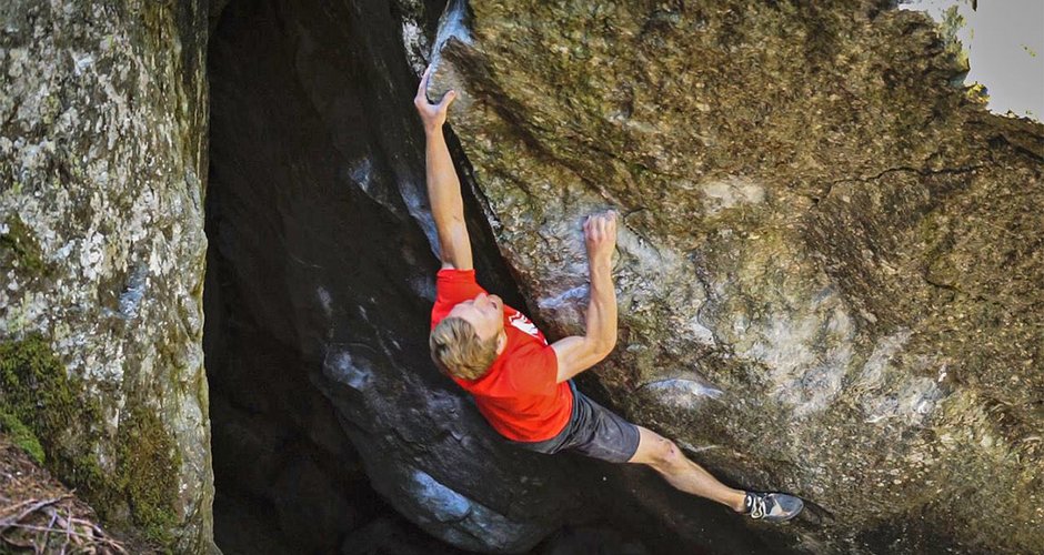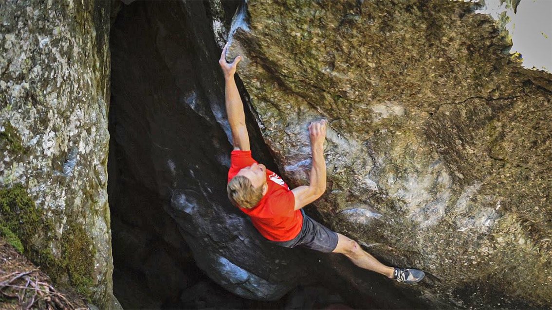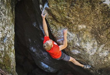Jakob Schubert klettert Ill Thrill (8b+) im Bouldergebiet Magic Wood