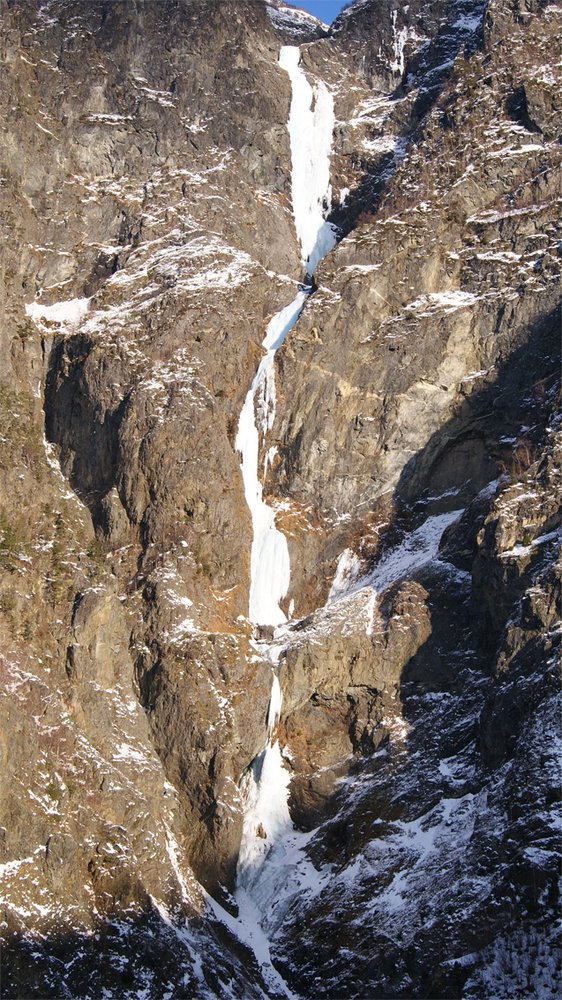 Ein ursprüngliches Ziel war natürlich auch das „Fosslimonster“ zu wiederholen. Schon bei der Anfahrt nach Gudvangen platzte dann der Traum dieser einmaligen Eisstruktur.