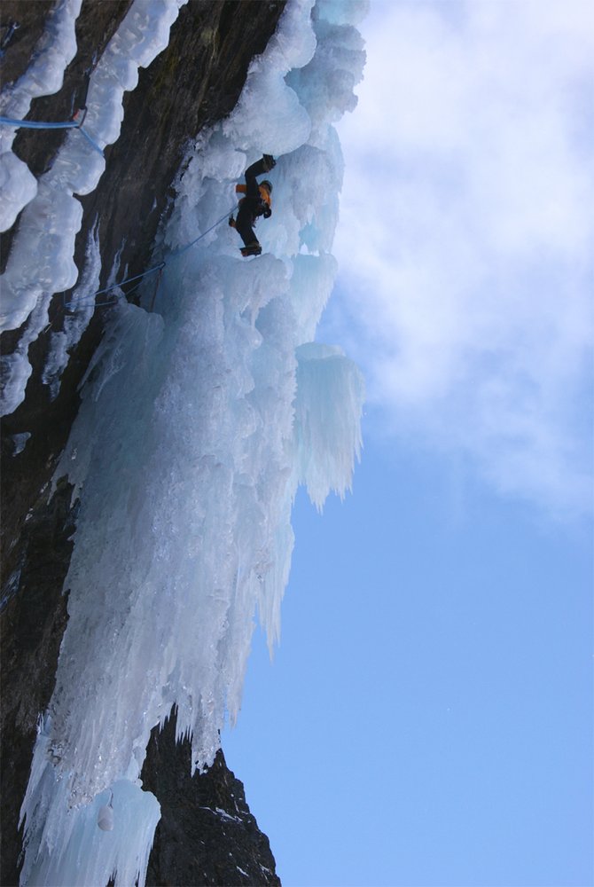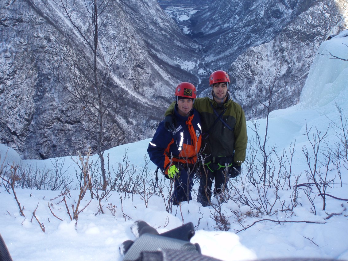 Rudi und Alexander gelangen mit „ In the Mood“ Wi 7, M8, E4 500m; und „Strada del Sole“ WI6+, X , 1200m - Erstbegehungen im Gebiet um Gudvangen.