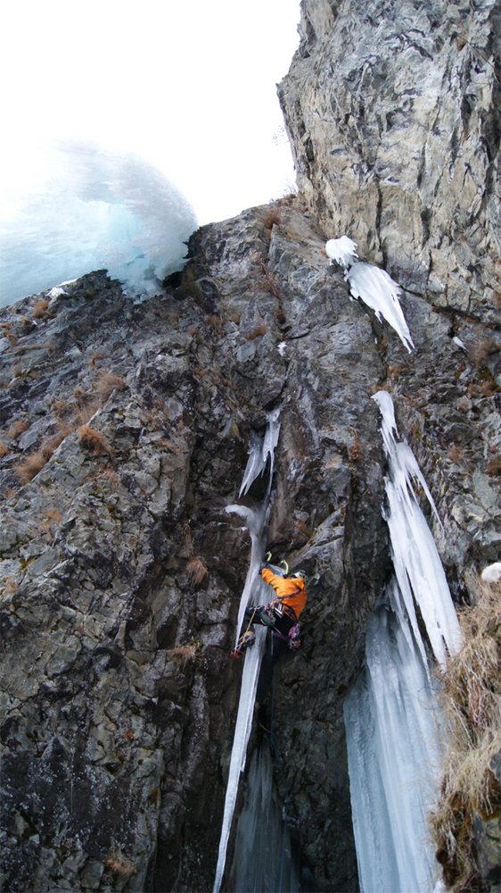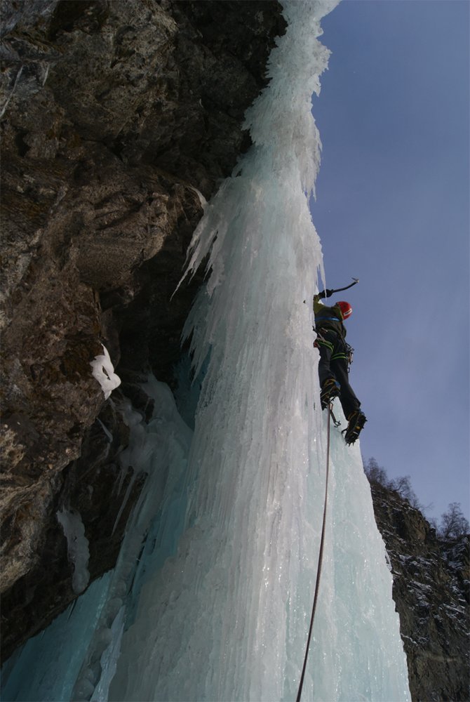 Obwohl die Verhältnisse seit Wochen perfekt für einen Eisaufbau waren, schien die Route kein Wasser bekommen zu haben und war auf den ersten 300m total trocken.