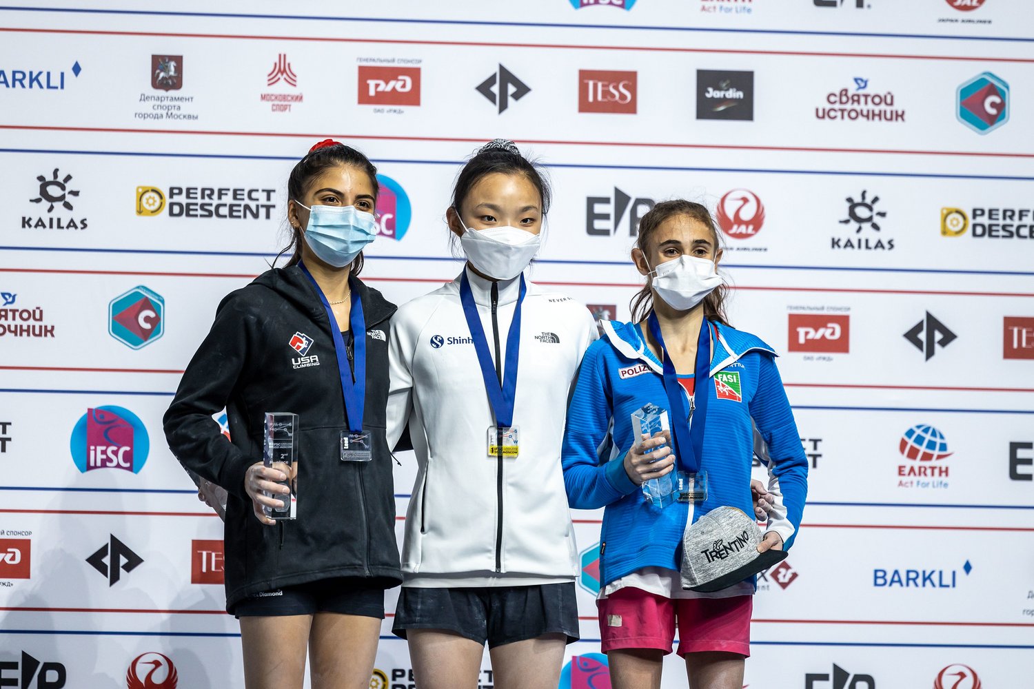 Natalia Grossman aus den USA und Laura Rogora aus Italien, die bereits im Halbfinale punktgleich waren, folgten Seo mit 37 Punkten. Die Silbermedaille der Weltmeisterschaften wurde Grossman aufgrund ihrer niedrigeren Kletterzeit zugesprochen, während Rogora den dritten Platz belegte und Bronze gewann.