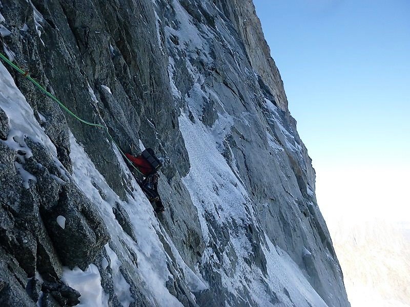 Laut dem Grandes Jorasses Kenner Julien Desecures soll die Japaner Route eine der besten Eistouren in der Wand sein, Cararach Soler und seine Freunde fanden hatten aber bei ihrer Begehung extrem trockene Verhältnisse mit wenig Eis vor.