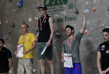 Parma, der nur eine Woche zuvor souverän den Junioren-Europacup in Imst für sich entscheiden konnte, setzte sich im Finale mit einer Höhe von 30+ vor dem Salzburger Max Adrian Rudigier (OeAV Radstadt) und dem Tiroler Matthias Schiestl (OeAV Zillertal) durch und durfte sich über einen ersten Staatsmeistertitel in der allgemeinen Klasse freuen. Mit dem Sieg beim Europacup in Imst und dem Gewinn des Staatsmeistertitels gehört der amtierende Vorstieg-Jugendeuropameister auch bei den bevorstehenden Junioren-Europameisterschaften (12.-14.06.2015) im schottischen Edinburgh zum Favoritenkreis.