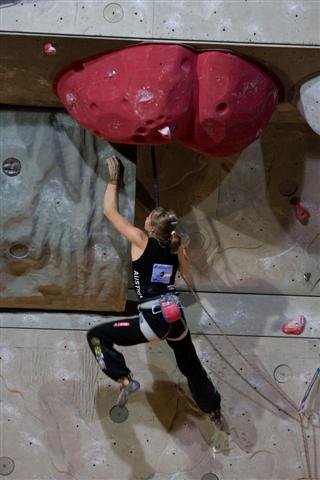 Auch Boulder-Spezialistin Katharina Saurwein wagte sich beim Finale noch einmal in die steile Kletterwand und bewies mit einem hervorragenden 11. Platz ihre Vorstiegsqualitäten.