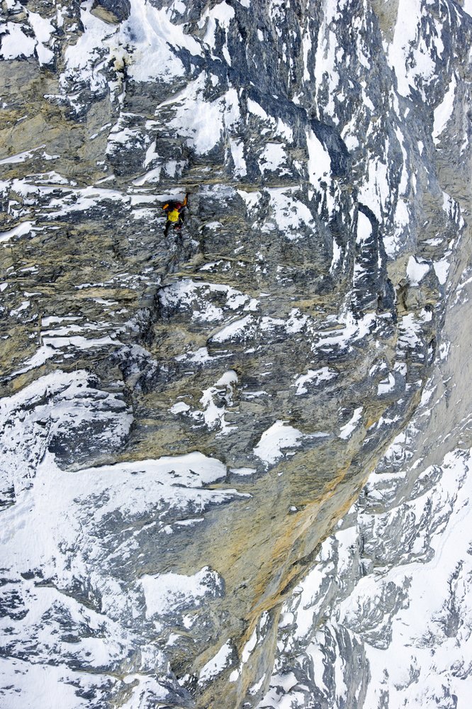 Wofür die Erstbesteiger um Anderl Heckmair noch drei Tage benötigten, absolvierte der Urner Profi-Alpinist Daniel Arnold während der Dauer eines Fussballspiels: die Durchsteigung der berüchtigten Eiger Nordwand über die legendäre, vier Kilometer lange Heckmair-Route solo und ungesichert in nur 2 Stunden und 28 Minuten. 27 Höhenmeter pro Minute im Durchschnitt. Einzige Hilfsmittel dabei waren zwei Eispickel und Steigeisen an den Füssen. Möglich ist eine derart schnelle Wanddurchsteigung nur im Alleingang und ohne Sicherung. Arnold konnte lediglich zwei kurze und besonders anspruchsvolle Kletterpassagen mit einer Selbstsicherung absichern. In allen anderen Wandabschnitten gilt bei einer Solobegehung: Ein Sturz endet in jedem Fall fatal! Neben hervorragender körperlicher Fitness und mentaler Stärke spielt bei einer Speed-Begehung auch die Ausrüstung eine zentrale Rolle. Im Vergleich zu den Erstbesteigern verfügen die heutigen Alpinisten über hoch entwickelte Funktionstextilien und Ausrüstungsgegenstände, die nur noch einen Bruchteil des Gewichts auf die Waage bringen und gleichzeitig höchste Funktionalität bieten.
