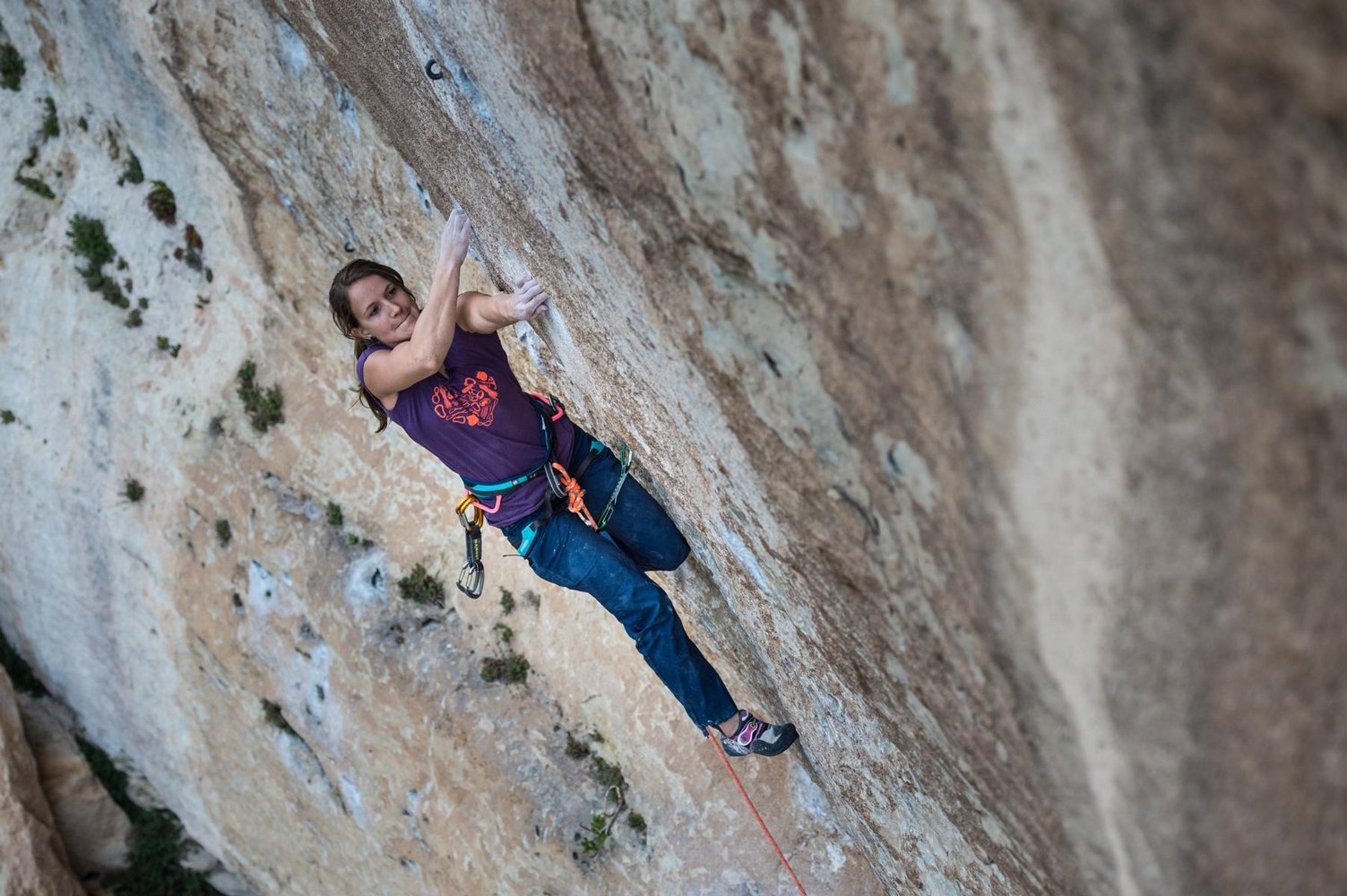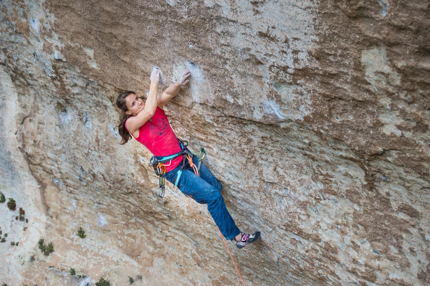 Wie komplex die Choreographie von »La RoseO« angelegt ist und wie grenzwertig die Einzelzüge sind, zeigt die Tatsache, dass die Tirolerin Anna Stöhr, vierfache Gesamtweltcupsiegerin im Bouldern und Mitglied im Mammut Pro Team, fast 30 Jahre nach der Erstbegehung vier Tage für die Realisierung der Route benötigte, die ihr alles abverlangte. „Am schwersten fiel mir der Zug über die Dachkante, da er sehr weit für mich ist“, so die Spitzenkletterin.
