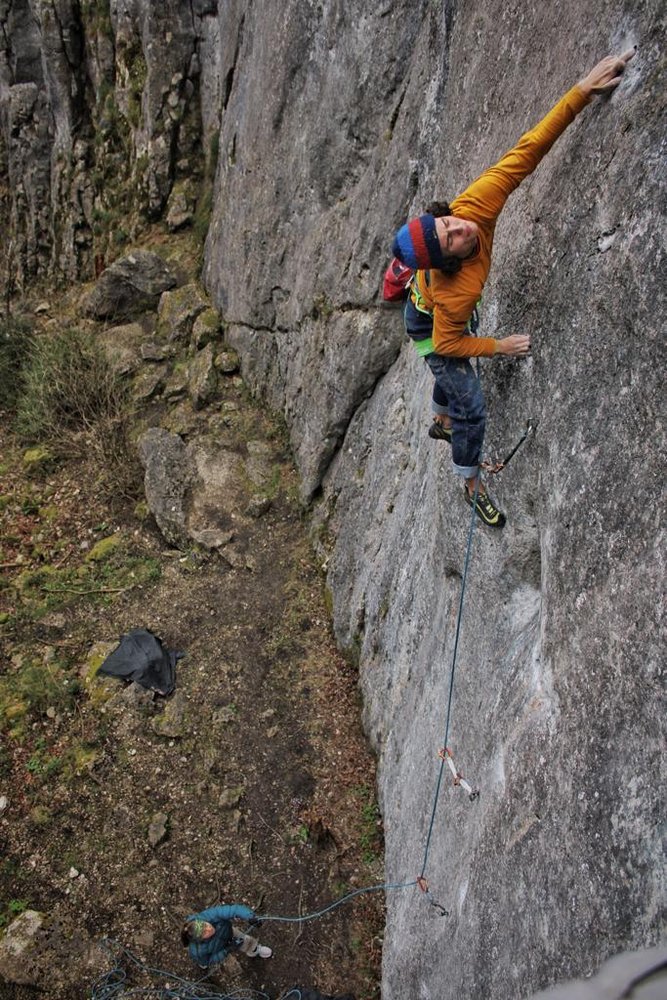 Dieser Klassiker der Freiklettergeschichte bietet an Schwierigkeit und Ästhetik alles, was sich das Kletterherz wünscht. Unbarmherzige Einstiegszüge im neunten Grad führen zu einer äußerst selektiven Crux, die rohe Kraft gleichsam mit präziser Bewegungskontrolle und filigranster Fußtechnik erfordert. Noch nie habe ich für nur einen Zug so oft anrücken müssen wie für diesen.