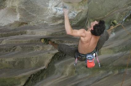 Als ich vor 3 Wochen zu ersten Mal in der Route war, half mir der Slowene Uros Perko beim Auschecken der Route. Den Boulder am Anfang der Route konnte ich bald klettern und auch die folgende technische Passage war schnell geschafft. Nach drei Tagen in der Tour kletterte ich bis an die Dachkante. Leider war ich schon völlig blau und hatte keine Chance den schweren Ausstieg nur ansatzweise zu klettern. Nach fast 15 Meter Dachkletterei folgt der Übergang in die Platte: von einer Schulterleiste an die Kante schnappen, den Fuß langsam, auf gleicher Höhe an die Wand pressen, mit der Hand weiterschnappen, dazugreifen und mit der anderen Hand auf einen guten Griff schnappen, alles total am Limit! Ich war mir also nicht ganz sicher ob ich es je schaffen würde so frisch an die Dachkante zu klettern, dass ich auch die letzten Züge noch schaffe.