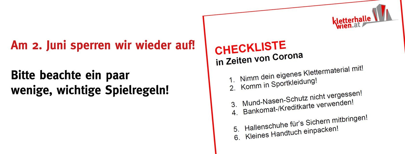 Die Betreiber von Kletterhallen Österreichs haben sich koordiniert und Vorschläge für Durchführungsbestimmungen, speziell für den Indoor-Klettersport (Seilkletter- & Boulderanlagen) ausgearbeitet, um sich unter Berücksichtigung der Hygienemaßnahmen auf eine Wiedereröffnung am 29. Mai 2020 vorzubereiten. Diese Maßnahmen wurden in Abstimmung mit den alpinen Vereinen und dem Kletterverband unter Berücksichtigung unterschiedlicher Bedürfnisse von kleinen, mittleren und großen Kletteranlagen erarbeitet.