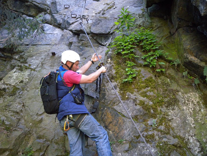 Auf dem Klettersteig oder am kurzen zu sichernden Grat zieht man dann einfach an der Seilschlinge und lässt sie zum Partner hinunter, der sich diese dann in den Gurt einhängt bzw. wenn er erfahren ist, kann er sich auch direkt einbinden. Viel schneller und einfacher lässt sich das fast nicht machen, das Seil ist auch recht schnell wieder im Rucksack verstaut.