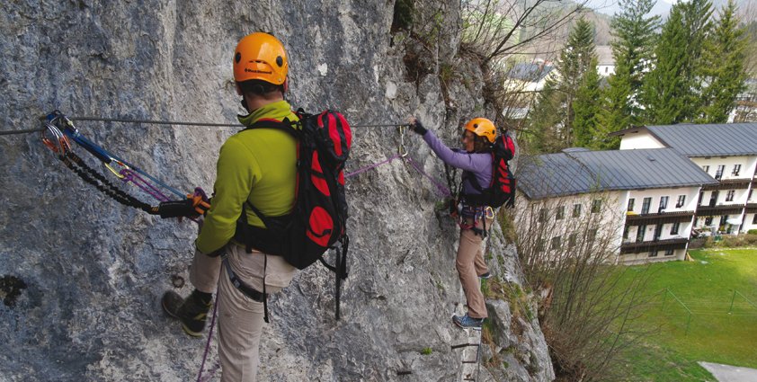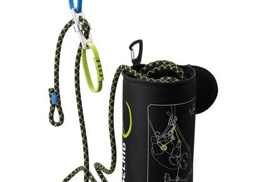 Wer die Seilsicherung nur für schwächere Kletterer oder Kinder am Klettersteig braucht, dem sei der Via Ferrata Belay Kit von Edelrid empfohlen. Es handelt sich dabei um eine handliche Tasche, in der ein Seil mit eingehängter Sicherungsplatte verstaut ist. Man hat es seitlich am Gurt oder am Rucksack hängen, mit einem Handgriff zieht man Seil und Sicherungsplatte heraus und kann sofort loslegen. Es gibt diesen in 2 Versionen - mit 15 m und 25 m Seillänge. Den Ferrata Kit aber nur am Klettersteig und nicht zur Vorstiegssicherung beim Klettern verwenden.