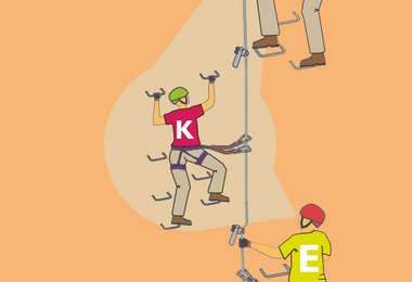 Gehen Kinder und Jugendliche selbständig und ohne Seilsicherung auf dem Steig, so bleibt der Erwachsene unmittelbar hinter dem Kind, um diesem jederzeit beim Klettern zu helfen. Laufend ist die korrekte Handhabung des Klettersteigsets und der korrekte Karabinerverschluss zu kontrollieren! Sind mehrere Erwachsene mit Kindern unterwegs, nimmt man die Kinder in die Mitte.