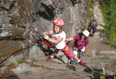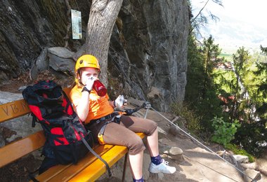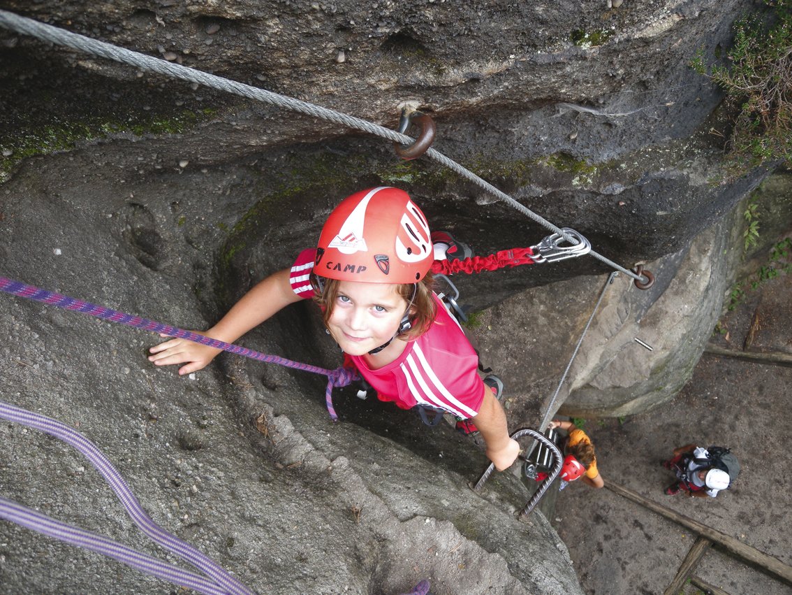 Ideal ist auch, wenn es für Kinder neben der Klettersteigtour noch irgendwelche Fun-Elemente, wie Höhlen oder Spielplätze gibt.