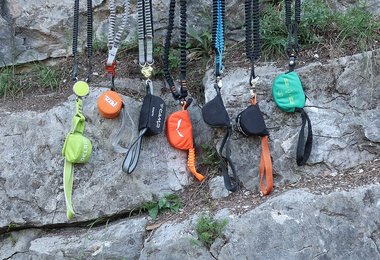 Erfreulicherweise gibt es im Klettersteigset Test 2025 nur geringe Unterschiede – das neue Petzl Klettersteigset lässt sich jetzt auch sehr gut einbinden. Generell geht das Einbinden bei Gurten mit dünner (schmaler) Anseilschlaufe besser (evtl. beim Gurtkauf beachten). Kleine Bandfalldämpfer wie z.B. beim Petzl Eashook oder beim Edelrid Cable Comfort Tri erleichtern das Einbinden, wenn die Ankerstich-Schlaufe des Klettersteigsets die richtige Länge hat. Salewa hat als einziger Hersteller eine elastische Anseilschlaufe - mit der geht das Einbinden sehr gut (und das Klettersteigset hängt knapp am Körper). Interessant ist auch, dass Petzl als einziger Hersteller einen Bandfalldämpfer anbietet, welchen man nicht öffnen kann.