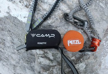 Camp „Kinetic Gyro Rewind Pro“: Die Italiener haben mit dem Gyro Rewind Pro einen ganz großen Trumpf in der Hand - die extrem gute Drehspindel, die sehr gut funktioniert! Herzstück ist die Spindel, die mit drei Drehgelenken ausgestattet ist. Das Gyro Rewind Pro ist eines der wenigen Klettersteigsets, dessen Arme sich wirklich nicht verdrehen. Die Karabiner sind ausreichend groß und lassen sich leicht bedienen und finden dank ihrer schmalen Schnapper Konstruktion auch in engen Kettengliedern noch Halt (dort wo dicke Karabiner nicht mehr durchpassen). Der Bandfalldämpfer ist klein/mittel. Das Gyro Rewind Pro ist ein durchwegs solides Klettersteigset, im Großen und Ganzen sehr hochwertig ausgeführt und sehr gut zu bedienen.