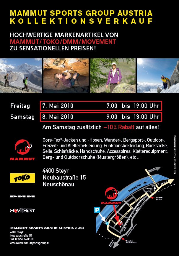 Ort: MAMMUT SPORTS GROUP AUSTRIA GMBH; 4400 Steyr; Neubaustraße 15; Neuschönau