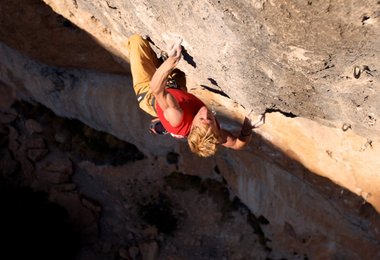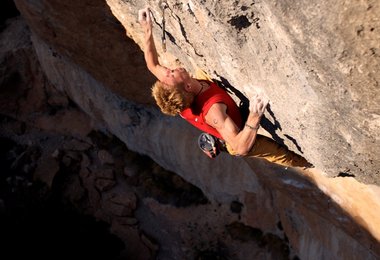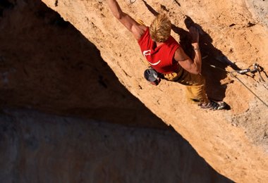 Naja, die reine Ausdauer zu bekommen, wäre nicht das Problem gewesen. Sie zu trainieren, ohne die Maximalkraft für die Ausstiegs-passage – sicher vergleichbar mit einem 8a-Boulder – zu erhalten, das war die Schwierig-keit dabei. Ich denke, dass gerade diese Kombination aus Ausdauer und der enorm schweren Passage am Ende der Route die geringe Anzahl an Wiederholungen erklärt.