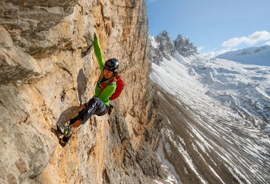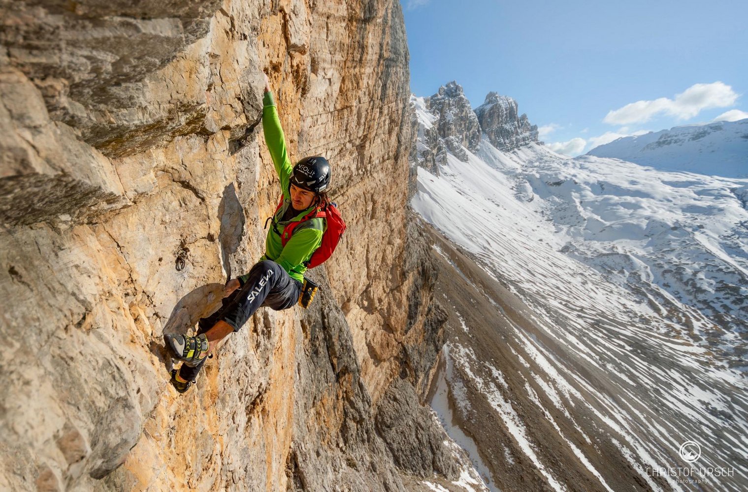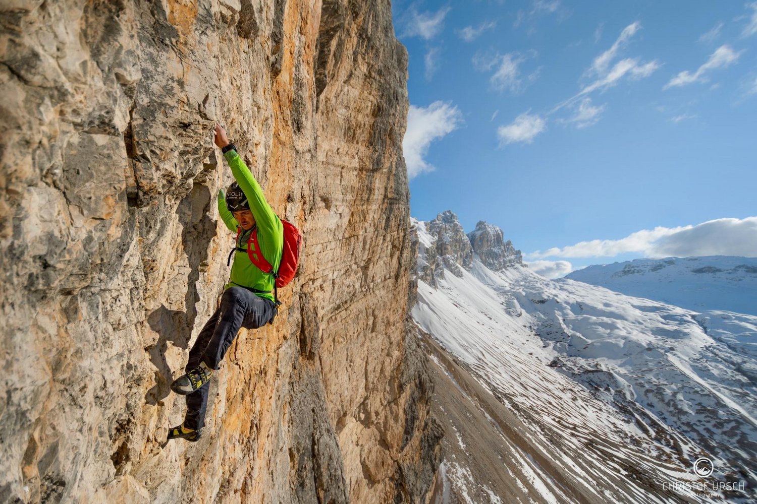 Simon Gietel free solo in der Lacedelli an der Cima Scotoni (c) Christof Ursch