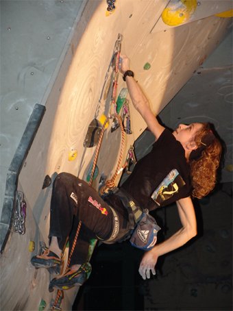 Angela Eiter war einfach zu klein, um auf das Podest zu gelangen, ein Nachteil, den diesmal sehr viele Kletterer spüren mussten. Hingegen erfreulich der 6. Rang von Babsy (Barbara) Bacher.