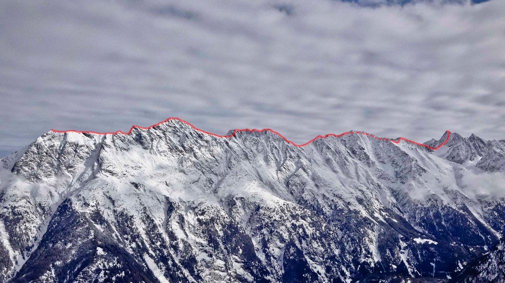 Der lange Grat zwischen Gamskogel (2813 m) und Wilde Leck (3359 m) misst an die 10 km, nicht weniger als 12 Gipfel sind zu besteigen bzw. zu überklettern. Die klettertechnische Schwierigkeit ist im 4ten Grad anzusiedeln, die alpintechnische Herausforderung ist im Winter aber gewaltig. Der legendäre Ötztaler Bergsteiger Reinhard Schiestl hat diese Gratüberschreitung in den frühen 80er Jahren erstmals im Winter gemacht, jetzt gelang Hansjörg Auer die erste Wiederholung!