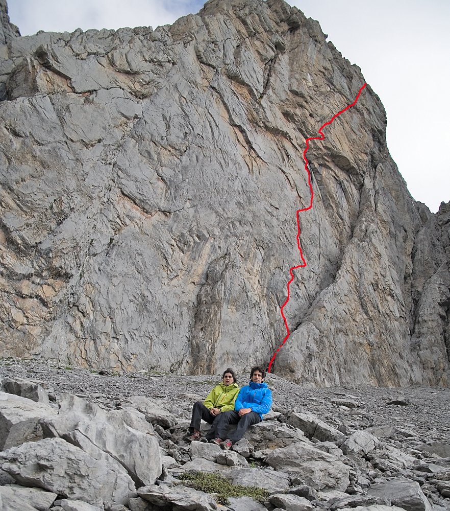 Wir punkteten die Tour am 6. Juli in Wechselführung, wobei wir beide die 8a Länge vorgestiegen sind. Wir versuchten die Tour ohne Bolts zu machen, doch mussten wir in den exponierten Längen einige wenige Bolts setzen. Sie sind aber schlecht und die Tour bleibt daher noch immer recht psychisch anspruchsvoll."