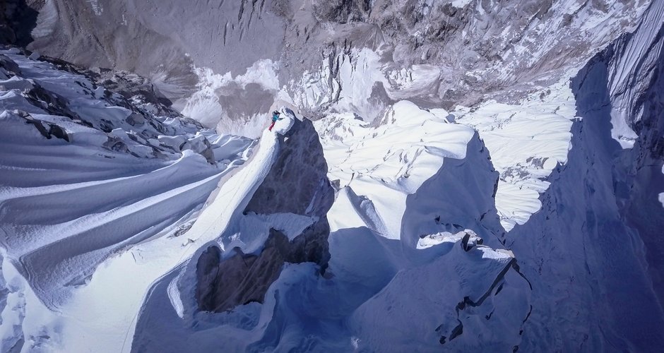 David Lama am Gipfel des Lunag Ri am 25.10.2018 nach seiner Lunag Ri Solo Erstbesteigung (c) Sean Haverstock / Red Bull Content Pool