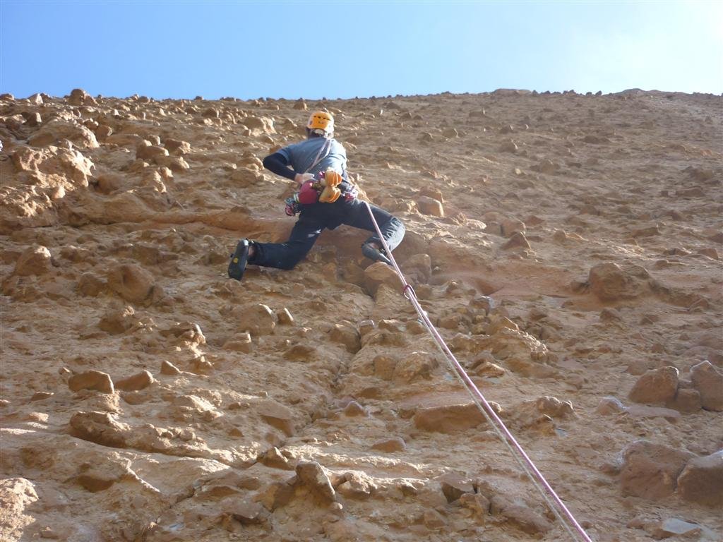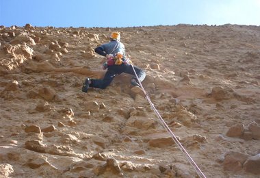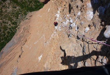 In teils extremer Ausgesetztheit klettert man eine steile Seillänge nach der anderen und in manchen Touren werden die sehr überhängenden Seillängen nur durch weniger überhängende Seillängen unterbrochen. Dass das auf die Kraftausdauer geht, mag nicht verwundern, vielmehr schon der Blick in den Kletterführer: Unglaublich, dass sich in diesen Wänden Touren in relativ moderatem Schwierigkeitsgrad wiederfinden! Im 6ten Franzosengrad ist man eigentlich schon dabei und kann sich mit entsprechendem Schmalz in den Ästen viele der Routen hochkämpfen. Um wirklich Spaß zu haben, sollte das Rotpunktniveau aber doch etwas höher liegen, sonst kann dem Aspiranten bei den teilweise bis zu 60m langen Seillängen vielleicht die Puste ausgehen. Das betrifft auch den Nachsteiger, der wegen des wirklich ordentlichen Überhängens mancher Touren, im Fall des Falle(n)s, eventuell den Wandkontakt verliert. Dann ist wohl ein Griff in die Technikkiste notwendig: Jümar und Trittschlingen sollten also vielleicht mit ins Handgepäck….