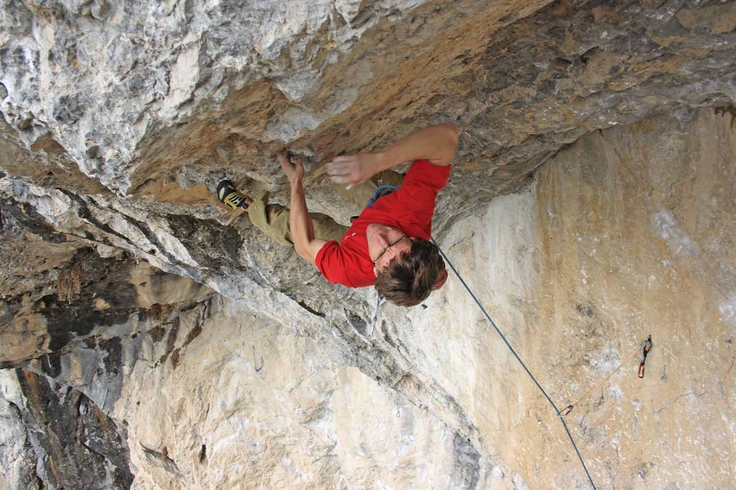 Dies nutzte Manuel Brunn für die erste Wiederholung von „Das Erbe der Väter“ (8c+). Das ehemalige Projekt von Alexander Huber war von Markus Bendler im Jahr 2005 erstbegangen worden und beeindruckt vor allem durch seine Länge von ungefähr 30 Metern. An den mit 8b bewerteten ersten Teil schließt sich ein markantes, horizontales Dach an, an dessen Kante vor allem Körperspannung gefragt ist. Für die Leisten im anschließenden Abschlussquergang sollte man noch genügend Kraft in den Speichern haben, wie sich bei so manchem Versuch gezeigt hat…Die Bewertung der Tour hält Manuel im Vergleich zu den von ihm bislang gekletterten Routen für angemessen.