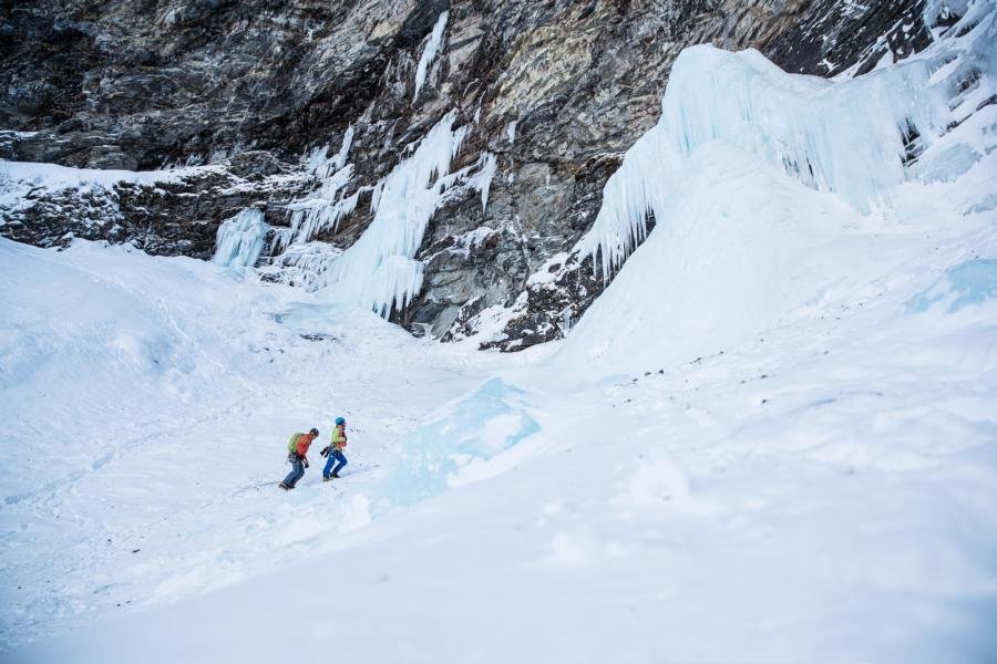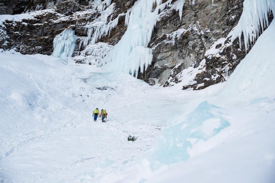 Auch Simon und mich zog es bereits einige Male zu dieser Linie hin. Simon konnte auch vor einigen Jahren die erste Solobegehung dieser Route für sich verzeichnen. Als wir dieses Jahr im Jänner ausmachten, mal wieder was zusammen zu unternehmen, entschieden wir uns die Crazy Diamond zu klettern, die gute Verhältnisse haben sollte. Bereits von der Straße aus ist der Fall ersichtlich und man kann von vom ersten Augenblick an, dieses wunderschöne Stück Natur nicht aus den Augen lassen. Die Kletterei machte uns wieder richtig Spaß, obwohl es nicht das erste und das letzte Mal sei sollte in dieser Route.