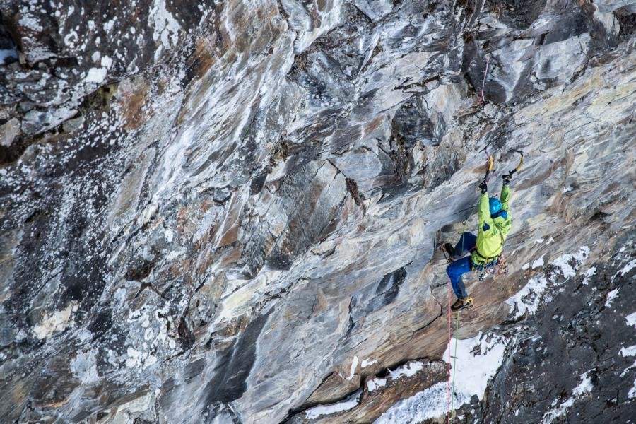 Während der Kletterei und beim Stand angekommen fielen wir dann ins Gespräch, wieso man den ersten Zapfen eigentlich nicht von links anklettern kann… da würde man mehr vom Zapfen haben und beim genaueren Hinsehen stellte sich die Frage, wieso eigentlich keine Route im linken Bereich raufgeht. Allzu brüchig sah der Fels ja nicht aus. Interessant, dass es früher nicht schon einer versucht hat, oder vielleicht doch? Wir waren einfach zu neugierig und beschloßen die Woche drauf mit ein paar Nägeln wieder zum Rastentaler zu starten. Was nach drei Tagen harter Arbeit mit Schlaghaken, Hammer und Friends bewaffnet, herausgekommen ist, ist für uns eine der wahrlich schönsten Mehrseillängen- Mixedkletterein, die wir je klettern durften! Viel mehr gibt es eigentlich nicht zu sagen…
