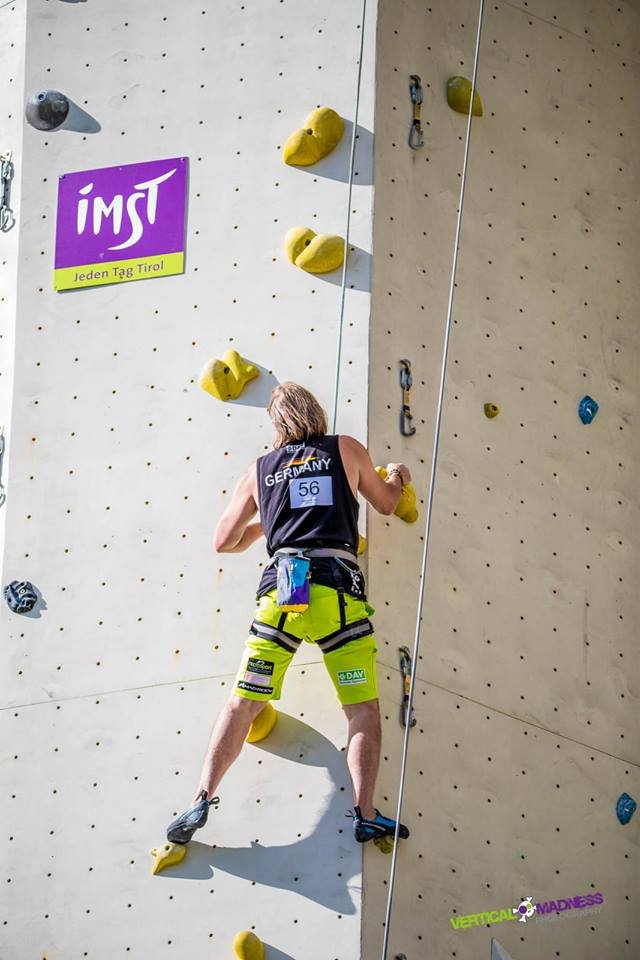 2014 hörte er, dass es Kletterwettkämpfe für Kletterer mit Handicap geben soll. Doch sein Kletterkönnen war noch nicht gut genug und Michael steigerte das Training auf 4-5 Einheiten pro Woche. Auch das Klettern und Trainieren mit Zusatzgewicht stand wieder auf dem Programm. Ein Jahr später bestritt er, nach fast 15 Jahren Wettkampfpause, seinen ersten Wettkampf in Imst und landete auf dem 5. Platz. Nicht schlecht für den Anfang. Im nächsten Jahr stand die Weltmeisterschaft in Paris auf dem Programm. „Ich tüftelte mir einen Trainingsplan zusammen. Auch vonseiten des DAV bekamen wir Paraclimber einen Nationaltrainer zur Seite gestellt, als eine Nationalmannschaft für Kletterer mit Handicap gegründet wurde.“ Michael war gut vorbereitet und belegte in Paris den sehr guten 5. Platz.
