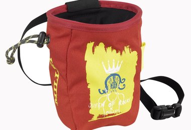 DieIt-Bags für Urban Climbers: Der Fleece gefütterte Ergo Chalk Bag mit exklusivem Millet „Queen of Rocks“ Design lässt sich per Kordelzug staubdicht verschließen und kann wahlweise per Karabiner oder Gürtel mit Schnallenverschluss befestigt werden. Er verfügt über eine Boulderbürstenhalterung und kostet 19,90 Euro.