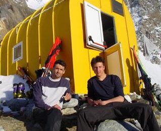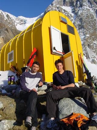 Max konnte inzwischen zwei deutsche „Freestyler und Freerider“ beobachten, die – wie sie uns nachher berichteten – einfach unseren Spuren vom Vormittag folgten und promt über die halbe Wand herunter kollerten. Zum Glück hatte sich niemand verletzt. Sie hatten nicht erwartet, dass das Gelände so steil sein könnte, sie wollten einfach nur ein bisschen „freeriden“.